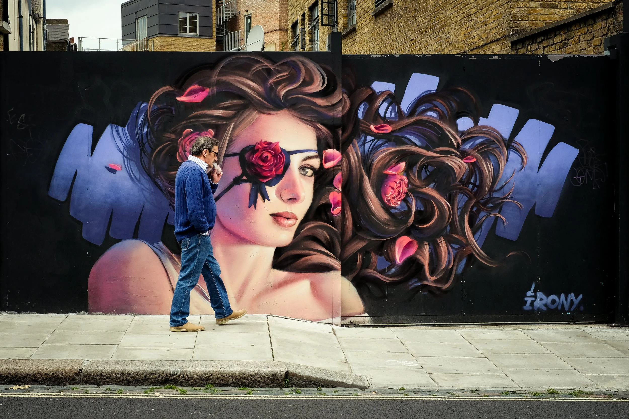 The second one kicks off on March 25th . We shall meet in a cafe at Liverpool Street for a quick hello and an introduction to the day ahead. The walk shall then commence and we will move along the back streets, skirting Petticoat Lane and Spitalfields Market for some street art and grit to get to Brick Lane. We will then stroll along it and pop in and out of the adjacent streets as well as Allens Garden for colourful murals (we might even see one being painted there and then) as well as funky characters that are frequenting all the little shops and bars with windows that are great for reflections.. A pitstop for some refreshments and to see where we are at and see how everybody are doing. I shall then guide you down Red Church Street, if time permits pop across to the area around the Citizen M hotel to later end the walk by Box Park & Shoreditch High Street train station